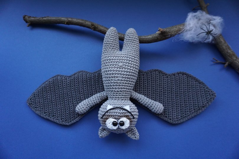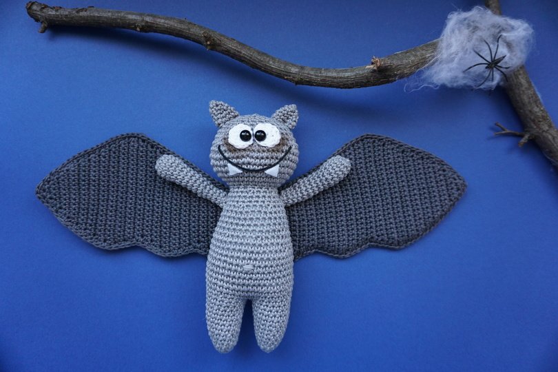 Die Fledermaus wird mit den angegebenen Materialien ca. 20 cm hoch und 36 cm breit.