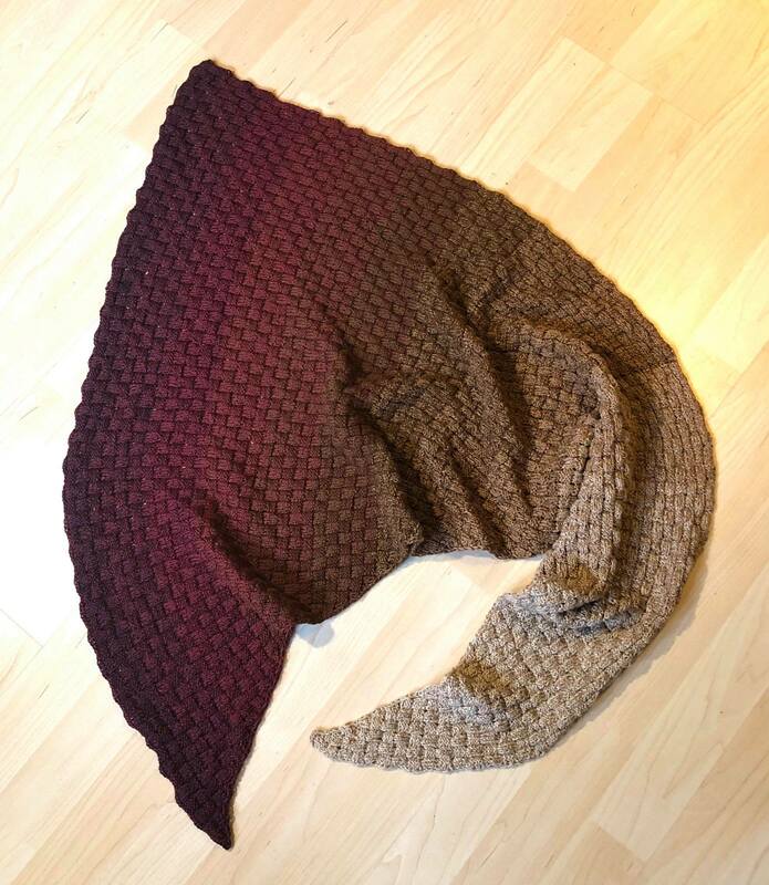 Da das Tuch im ungespannten Zustand einen leichten 3 D Effekt hat, verbaucht das Muster mehr Garn als nur kraus rechts gestrickte Tücher.