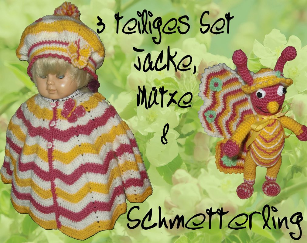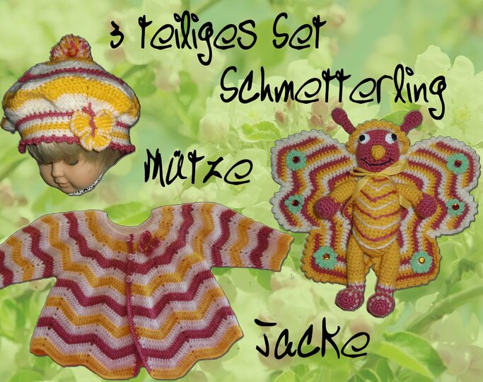 Das Jäckchen, sowie die Mütze haben ungefähr die Größe 86,