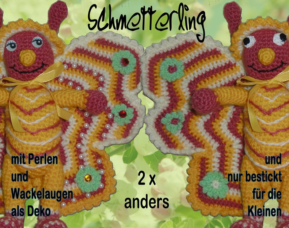 Mit Wolle der Nadelstärke 3 – 3,5 wird der Schmetterling ungefähr;