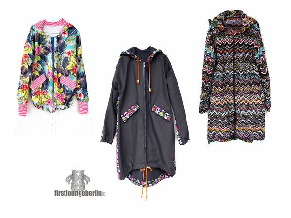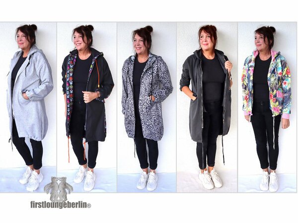 ♥♥ Gerda Mantel im Vokuhila Style kann sowohl im Sweatstoff-Look, oder als Sommersonnenjacke, als Wintermantel gefüttert oder im Regenjacken Style genäht werden, als auch als edle oder coole Übergangsjacke. Der Mantel ist mit Klappentaschen, kann aber auch mit Seitentaschen genäht werden. In der Länge kann Gerda sowohl verlängert wie auch gekürzt werden.Der Saum ist mit Tunnelzug. Dazu gibt es auch Anpassungs-Tipps hier im eBook. Wenn es das Material zulässt kann auch einfach nur mit einem Geradstich alles zusammengenäht werden, ohne mit Zickzack oder Overlock zu versäubern. Der Mantel ist mit Reißverschluss und Beleg, kann aber auch mit Beleg ganz gefüttert werden. Die Anleitung ist wie bei allen firstloungeberlin eBooks sehr ausführlich in Bild und Schrift und ganz ehrlich Schritt für Schritt erklärt. Anfänger können nach einer vollständigen Nähprobe sich ihren Lieblings-Look gestalten, anpassen, ändern und dann ganz einfach nachnähen.♥♥
