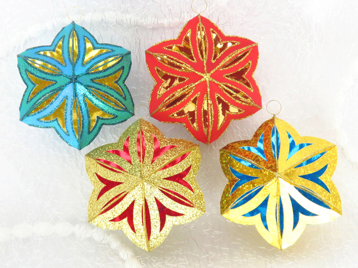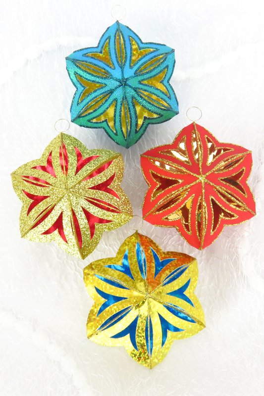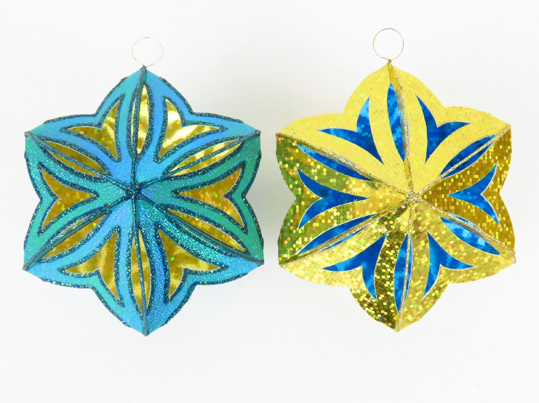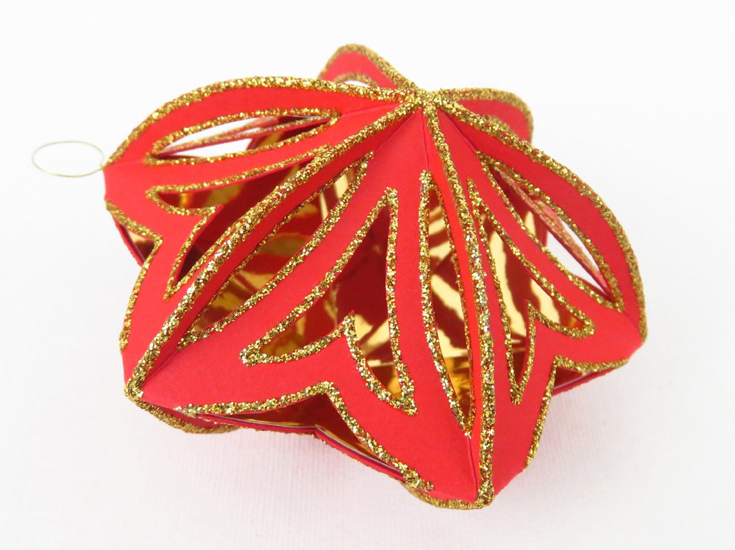 Für das Innere habe ich nur Hologrammpapier und Spiegelglanzpapier verwendet, da würde sich auch deutlich dünneres Papier gut eignen, aber es soll glatt und glänzend sein.