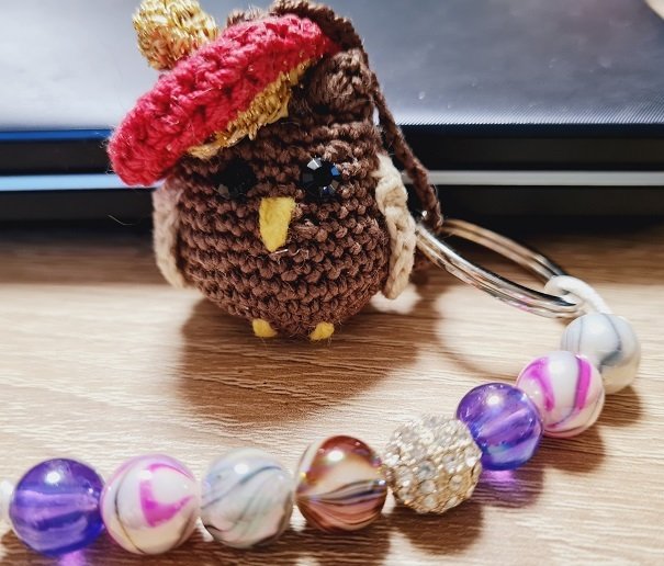Ideal zum Verbrauchen von Wollresten geeignet. Mit verschiedenen Wollsorten entstehen je nach Bedarf unterschiedliche Größen der Eule. Ideal auch als Schlüsselanhänger