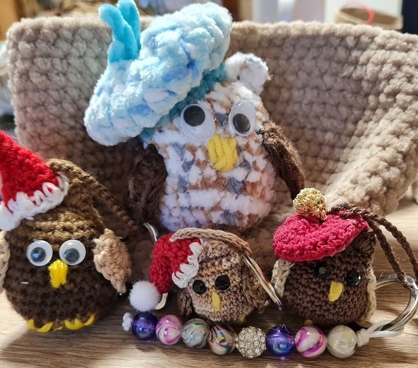 Je nach Wollstärken werden die Eulen von ca 4 cm bis etwa 15 cm