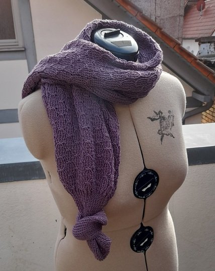 Der Schal ist ungedehnt ca. 40cm breit und je nach Version 160cm oder 240cm lang.