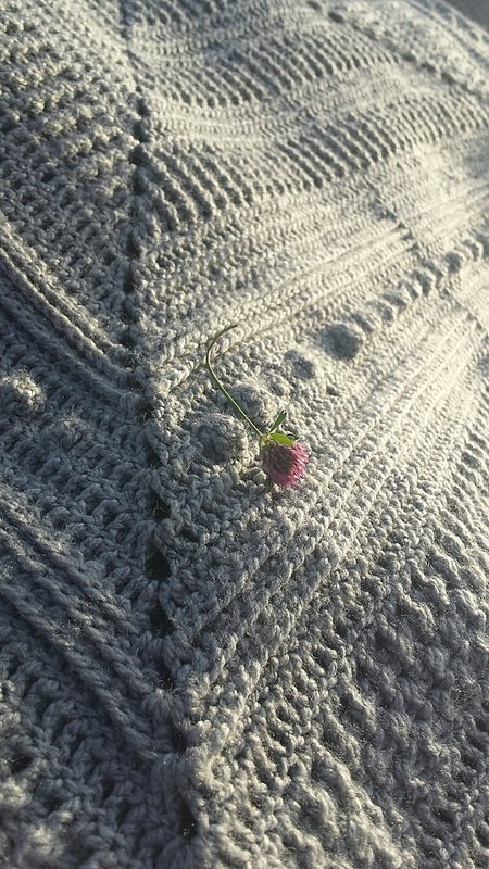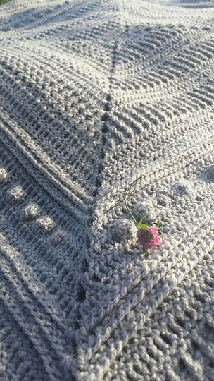 Du solltest schon ein Quadrat ( von der Mitte ausgehend ) gehäkelt haben, damit du weißt, wie sich diese Decke aufbaut.