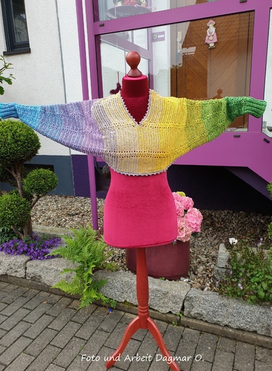 Wir haben alle mit gefachtem Farbverlaufsgarn, 4-fädig gearbeitet.