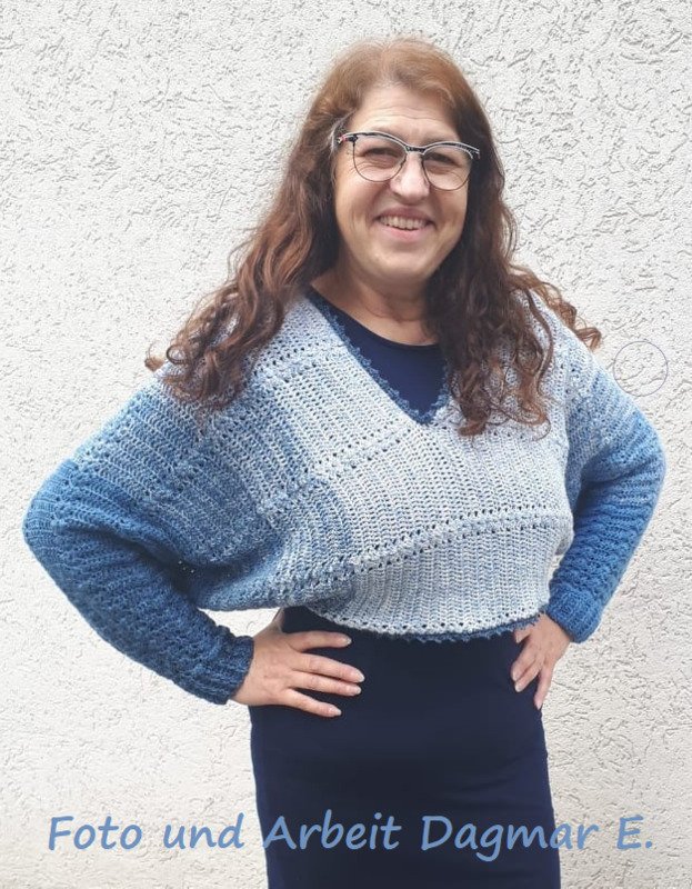 Gute Häkelkenntnisse sind aufgrund des Anpassens der Größe, und Anfertigen des Arm- und Halsauschnittes erforderlich!