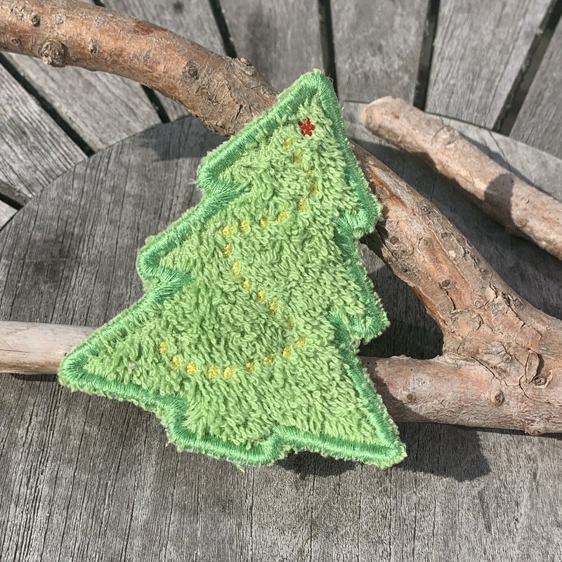 Tannenbaum /Weihnachtsbaum-WaschPad als ITH-Datei d.h. er wird komplett in der Stickmaschine hergestellt.