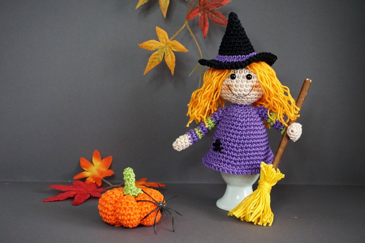 Häkelanleitung für Eierwärmer Hexen inkl. Besen und Kürbis