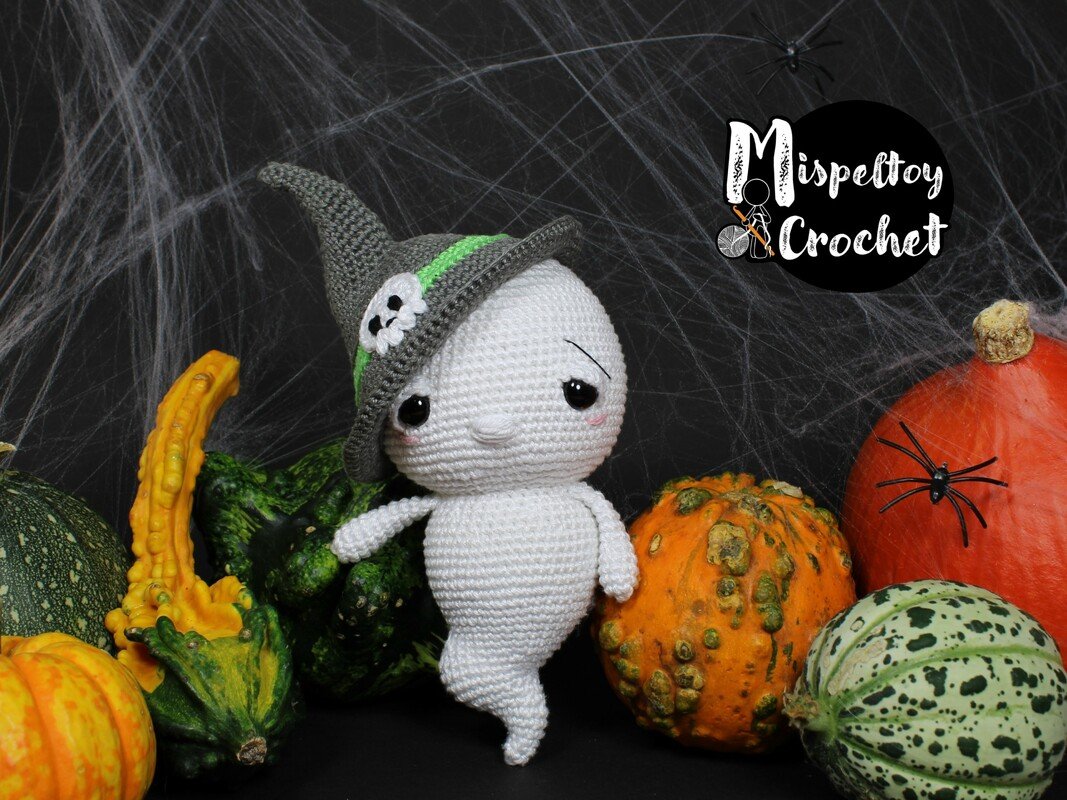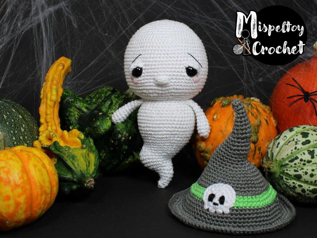 The cute/spooky Crochet pattern "Mogwai the sleepy ghost" by Mispeltoy Crochet