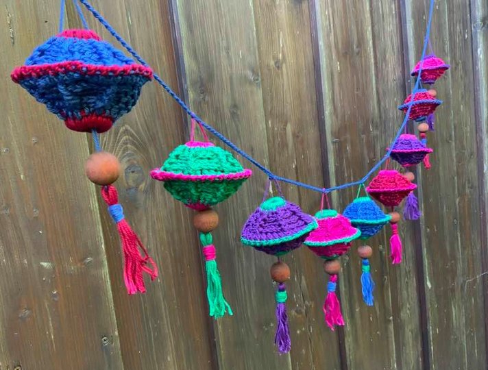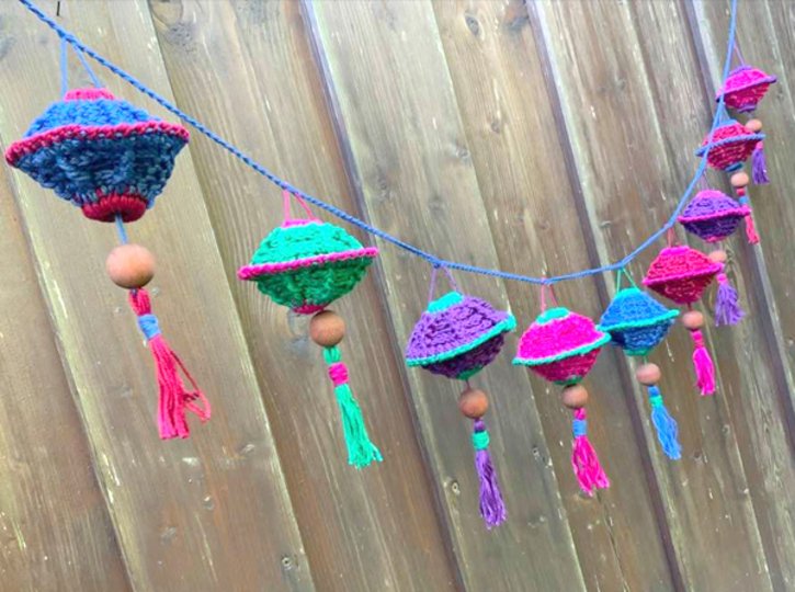 Du kannst Deine Lampiongirlande so lange machen wie Du es willst und Wolle hast.