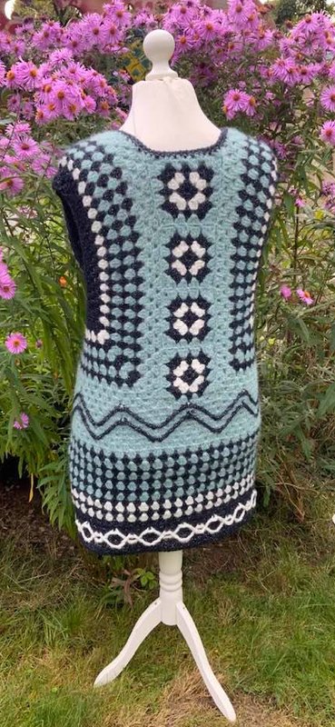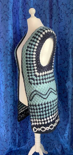 Langweste "Grannyfun"...ist eine flotte, warme Weste mit dem geliebten Grannymuster..diese Langweste hat ein prima Passform und Du kannst sie auch lässig über dünnere Pullover tragen ...eine prima Anleitung ..auch für Männer!