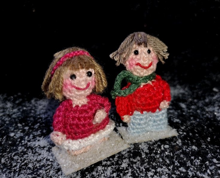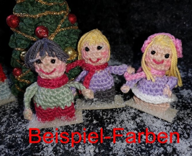 Mit dieser Häkelanleitung können Sie die Ausstattung zu einem Winterdorf nacharbeiten. Sie besteht aus niedlichen Püppchen (Version 1 mt Hose, Version 2 mit Kleid), einem kleiner Schneemann und einem stattlicher Tannenbaum. Und wenn Ihnen die Ausstattung gefällt, dann werfen Sie doch auch mal einen Blick auf das Winterdorfhäuschen oder die Winterdorfkirche. Viel Spaß wünscht Petras Häkelvergnügen.