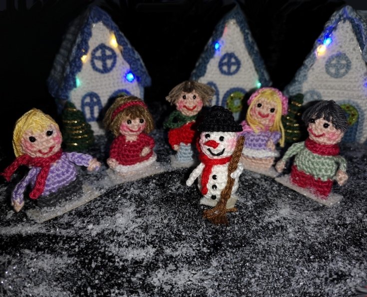 Mit dieser Häkelanleitung können Sie Ihr eigenes Winterdorf nacharbeiten. Die Größe des Dorfes können Sie individuell durch die Anzahl der von Ihnen gehäkelten Häuser und Bewohner selbst gestalten. Diese Sammlung enthält die folgenden Anleitungen (die Sie auch einzeln in meinem Shop finden):