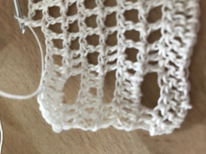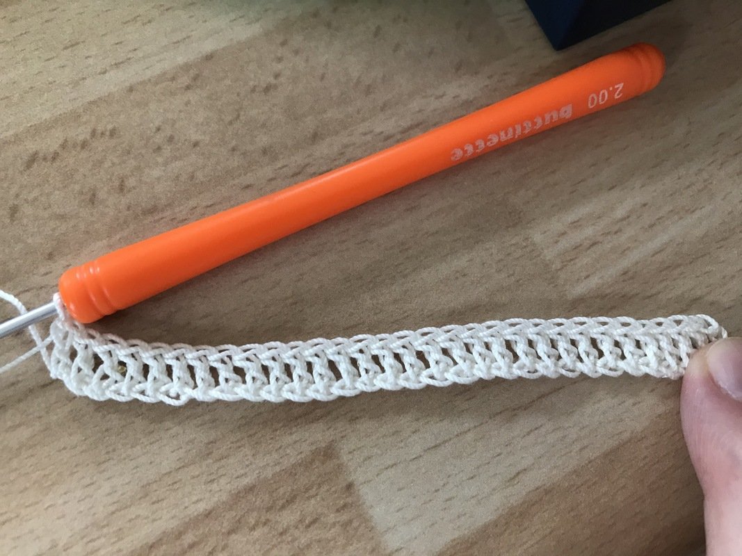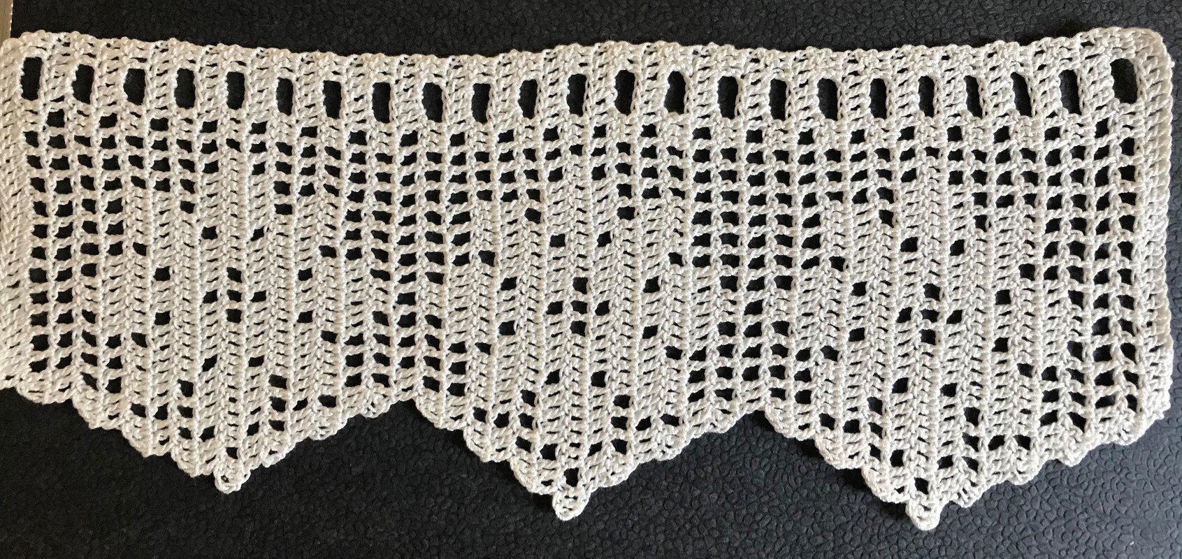 Die Anleitung ist einfach erklärt. Die Gardine besteht aus Luftmaschen und Stäbchen.