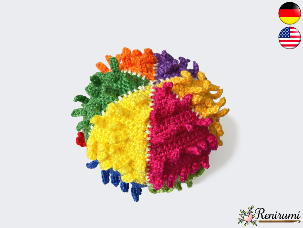Häkelanleitung bunter Spielball mit Noppen