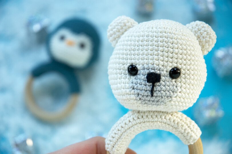 Häkelanleitungs-Set von Roxy's Crochet. 2 in 1. Pinguin und Eisbär Rasseln.