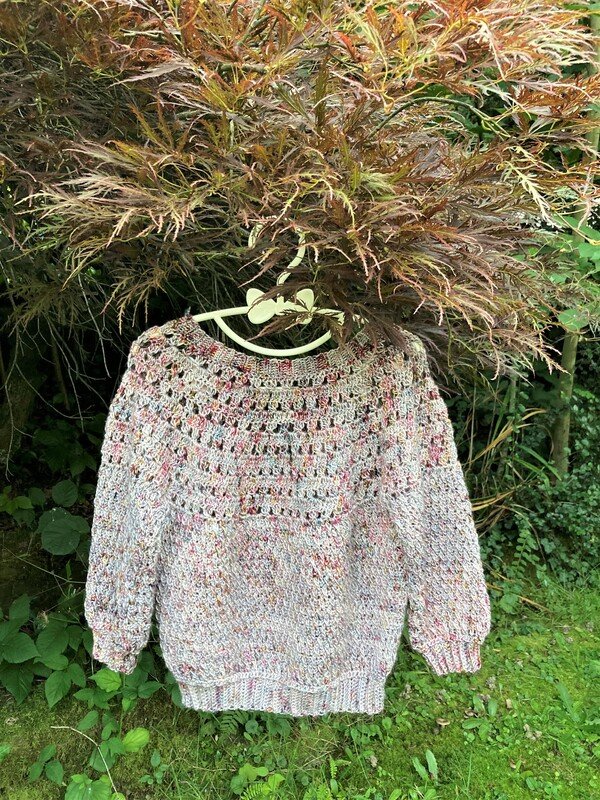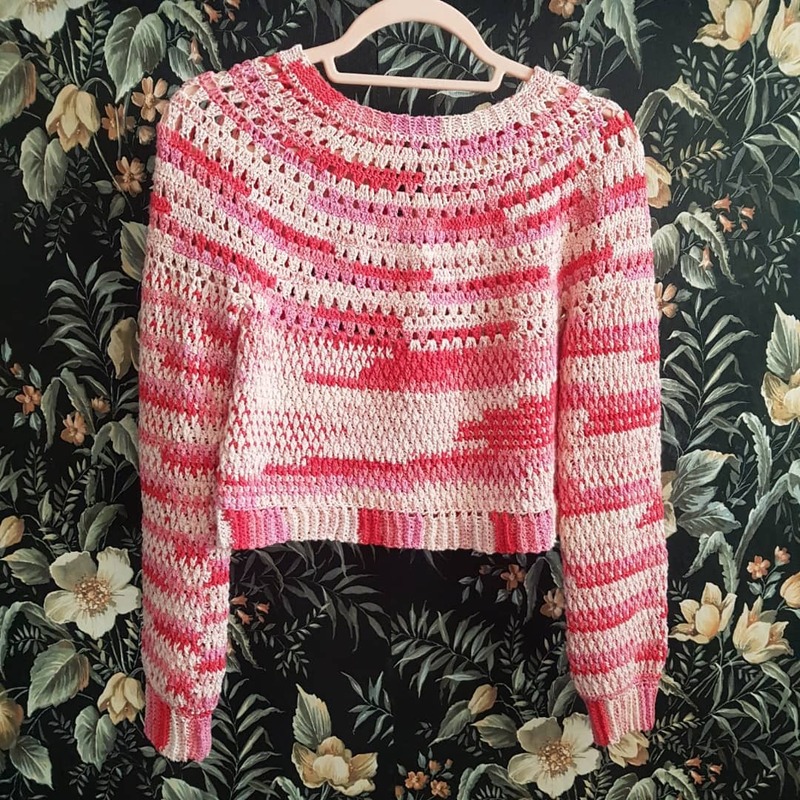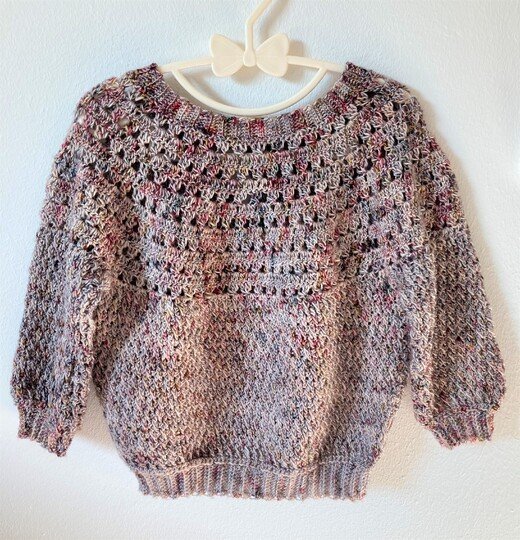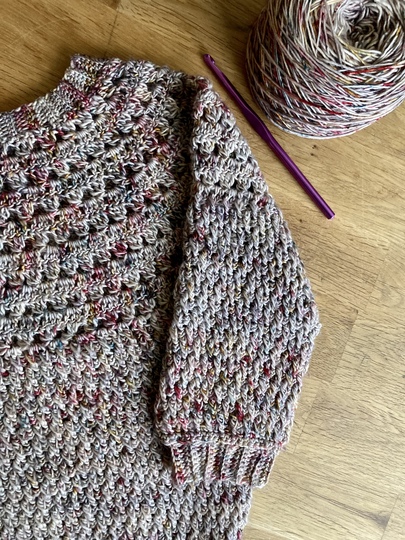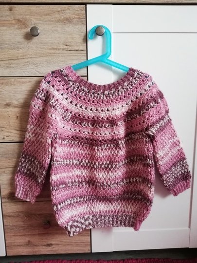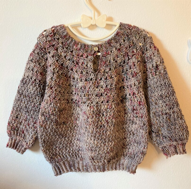 Meine Testerinnen und ich haben von Größe 3-4 Jahre bis Damen Größe 38 gehäkelt. Der Pullover kann aber auch in jeder größeren Größe gehäkelt werden, da die Rundpasse jederzeit schnell anprobiert werden kann und man somit genau auf seine Körperform anpassen kann.