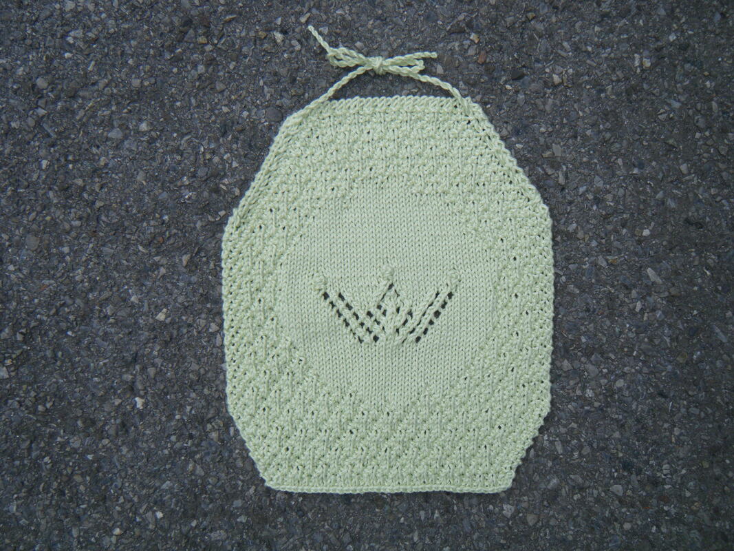 Das Lätzchen ist ca. 20x24cm gross und wird von oben nach unten gestrickt.