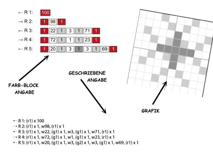 Die Grafik ist 100 Quadrate breit und 100 Quadrate hoch und hat 7 Farben