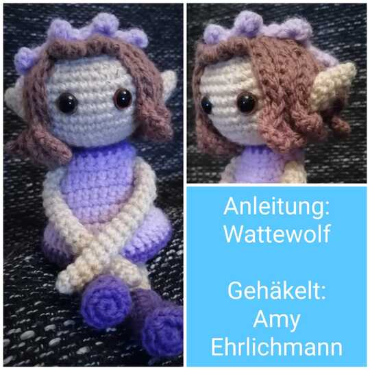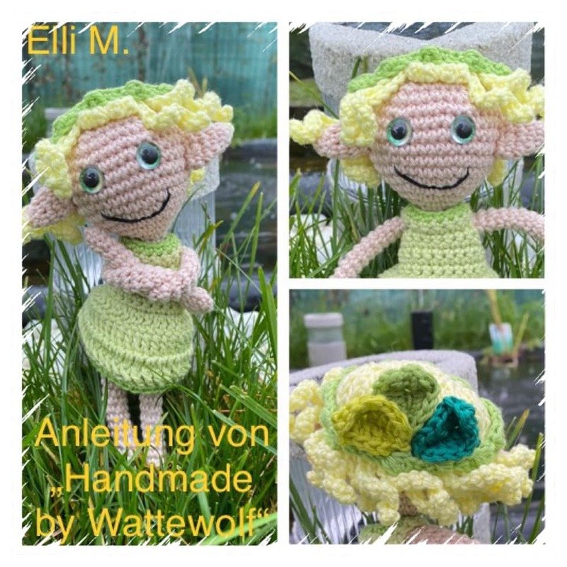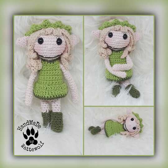 • Elfe Mara ist mit der angegebenen Wolle ca. 18 cm groß. Dies variiert natürlich je nach Wolle, Nadelstärke und ob du fest oder locker häkelst.
