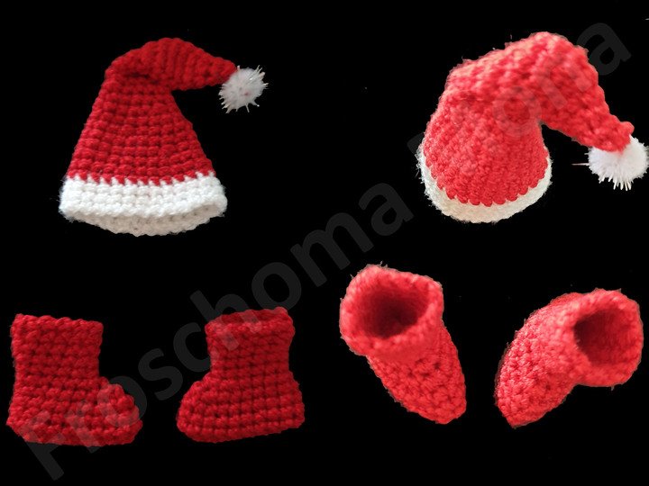Mit dieser Anleitung kannst du eine Santa Mütze und Stiefel häkeln.