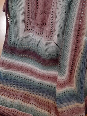 Du brauchst 3fädige Bobbel (gefachtes Farbverlaufsgarn) Lauflänge 250m/50g, oder beliebiges Garn. Verbrauch bei Bobbel ab 2100m Lauflänge für die Babydecke, 8000m Lauflänge für die Große. Ich habe eine 3,75er Häkelnadel benutzt, Schere und Stopfnadel.
