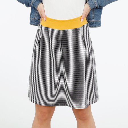 FRAU ANTJE ist unkomplizierter Jerseyrock mit Kellerfalten im Vorder- und Rückenteil und bequemem Taillenbündchen. So ist er im oberen Bereich schön schmal und bietet zum Saum hin genügend Bewegungsfreiheit – perfekt für entspannte Sommertage! Garantiert Dein neuer Lieblingsrock.