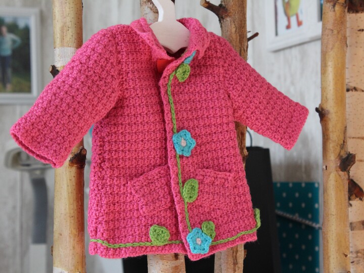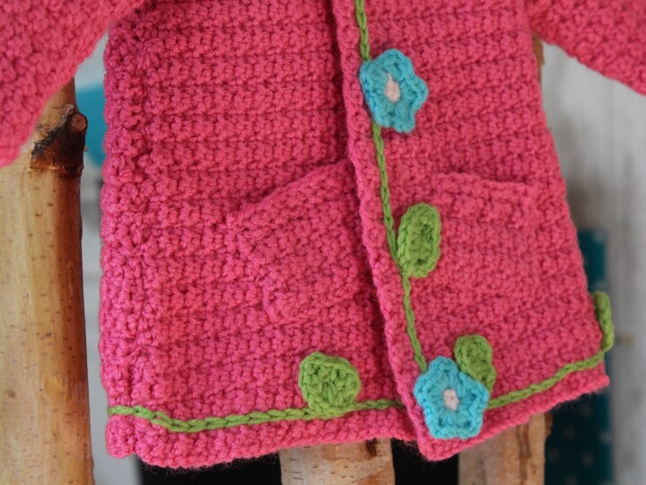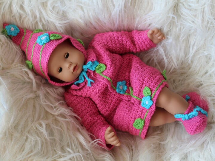 Du suchst eine farbenfrohe Jacke für das kleine Püppchen? Wie wäre es mit dieser Anleitung für eine Jacke, eine Mütze und ein paar Schuhchen?