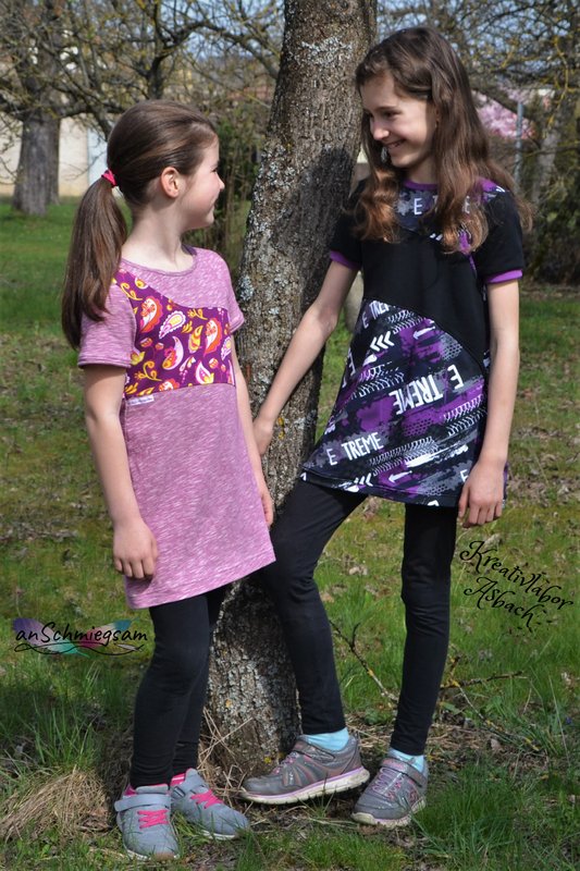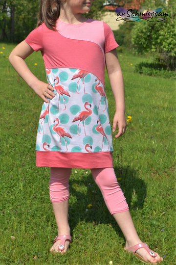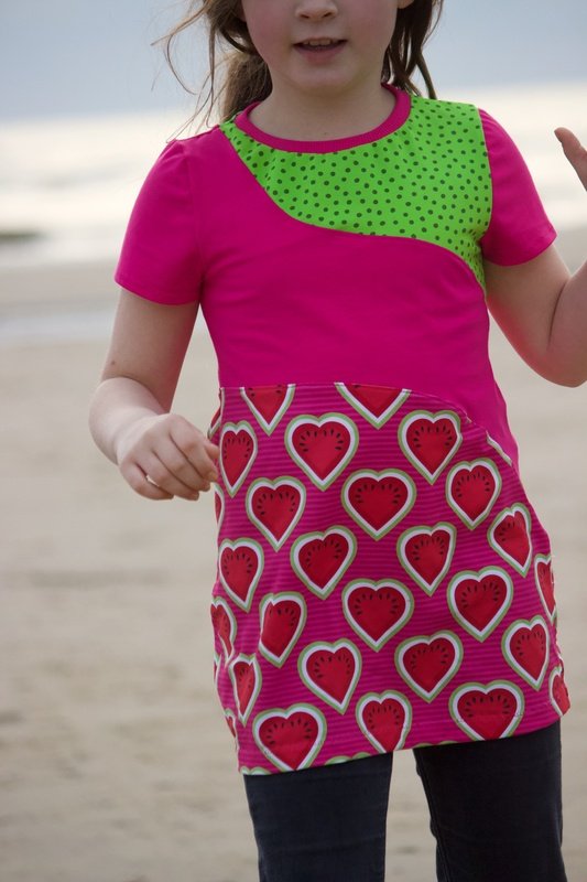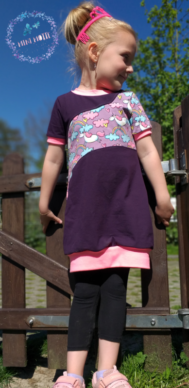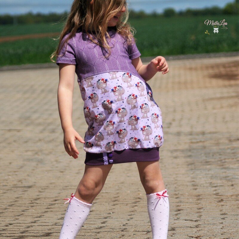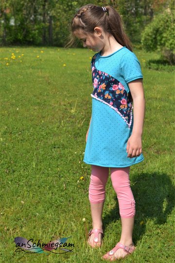 Das Schnittmuster Longshirt und Kleid Hula Wave ist für dehnbare Materialien konzipiert und enthält kurze, wie lange Ärmel. Hervorragend eignet sich dafür Jersey und Sommersweat. Das Longshirt und Kleid ist in den Größen 80 bis 164 gradiert und für schmal bis normal gebaute Mädchen geeignet. Es umspielt leicht die Hüftpartie. Für ein optisches Highlight sorgen zwei schräg gerundete Teilungen im Vorderteil. Die Teilung kann auch für das Rückteil angewendet werden. Für ein Basicshirt/Kleid können alle Teilungen weggelassen werden.