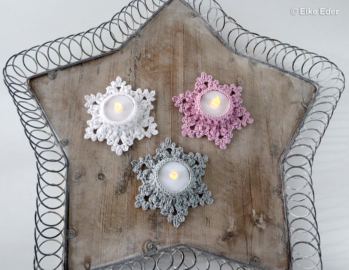 Die beiden anderen Teelicht-Modelle, welche auf dem letzten zwei Bild zu sehen sind, sowie dazu passende Schneeflocken, findest du hier in meiner Kollektion: