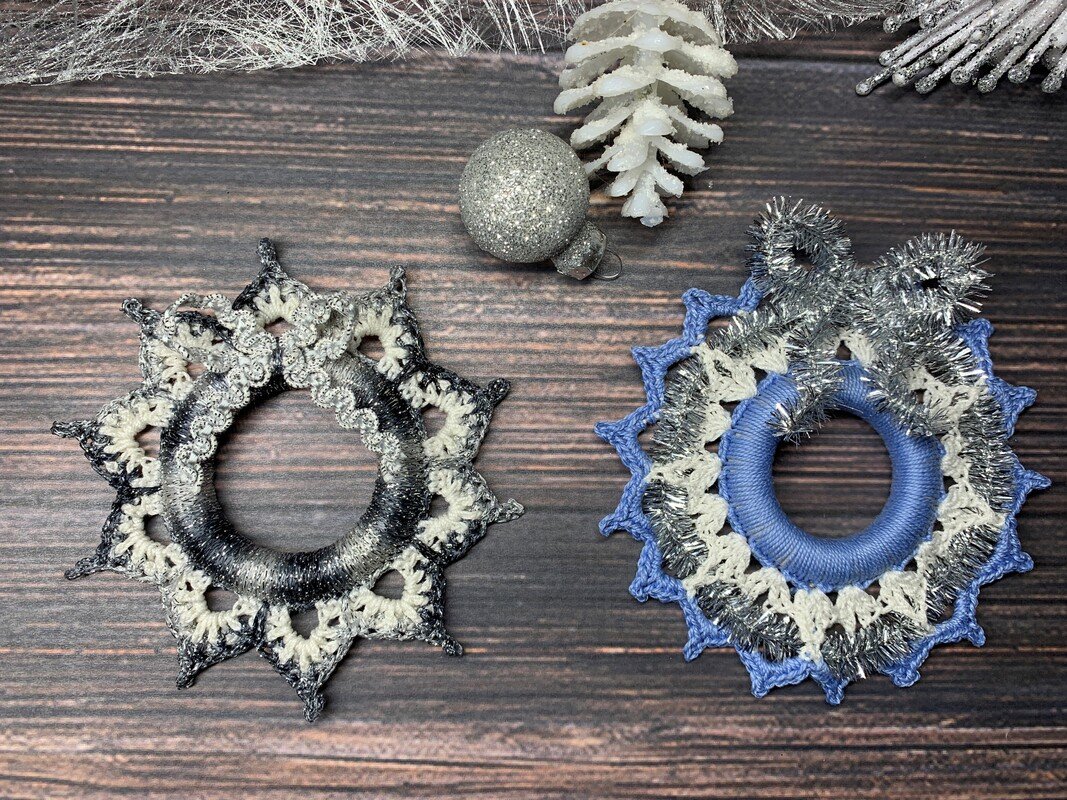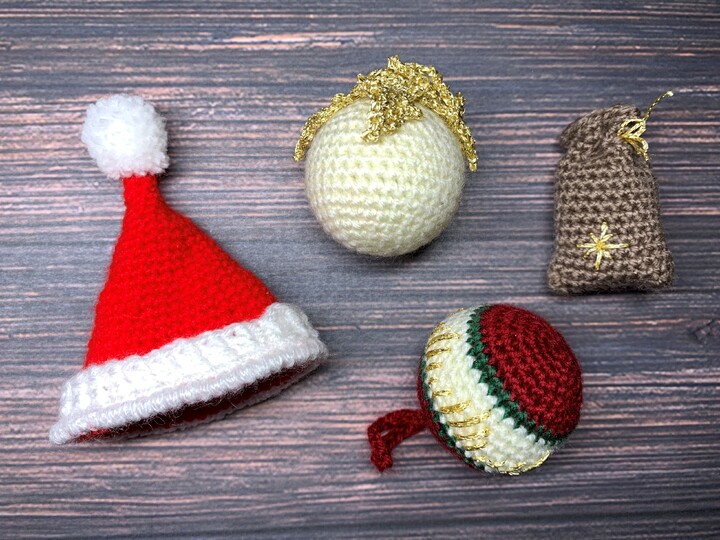 Wenn die in der Anleitung beschriebene Wolle verwendet wird, haben die einzelnen Weihnachtsdekorationen folgende Größen:
