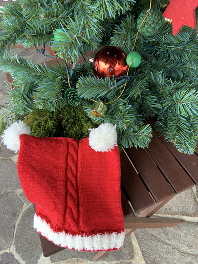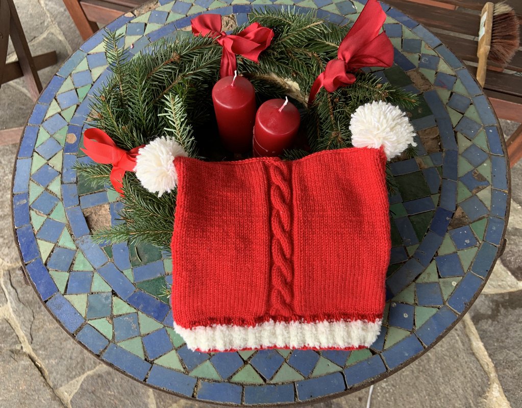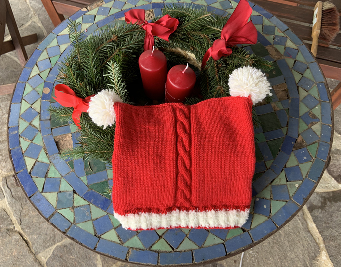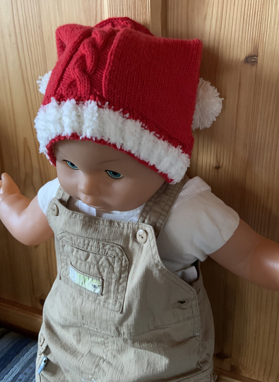 Die Nikolausmütze in den klassichen Farben Rot und Weiß sieht nicht nur zur Weihnachtszeit niedlich aus. Sie besteht aus einem Teil mit eingestricktem Zopf (in Rot) und zwei kleinen Bommeln (in Weiß). Sie kann auch in anderen Farben (weihnachts-neutral) gestrickt werden.