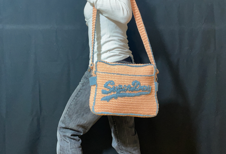 Die Tasche wird nur mit festen Maschen gearbeitet. Die 2-Schichten-Häkeltechnik ist nicht schwer und wird in der Anleitung haargenau erklärt. Falls Ihr den SuperDay-Schriftzug aufsticken möchtet, findet Ihr am Ende der Anleitung eine Vorlage dafür.