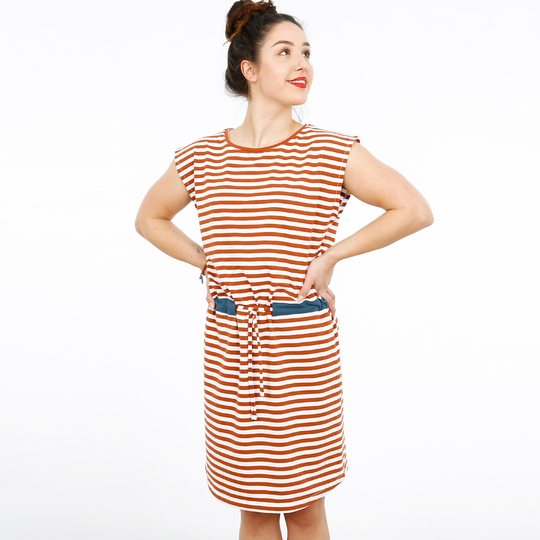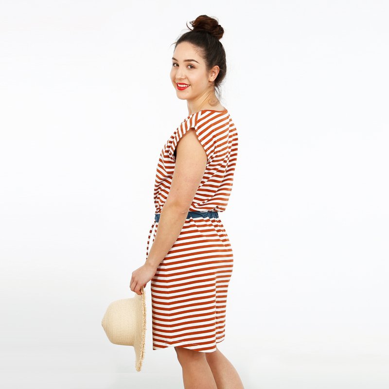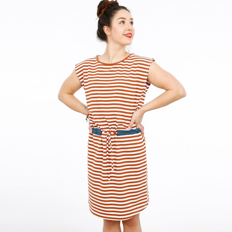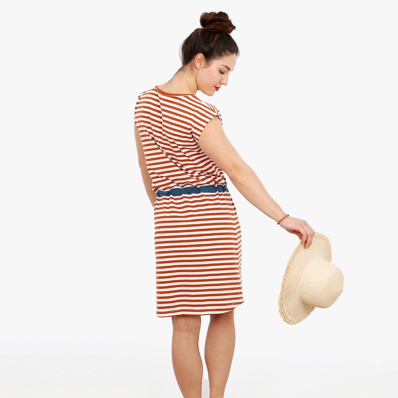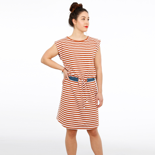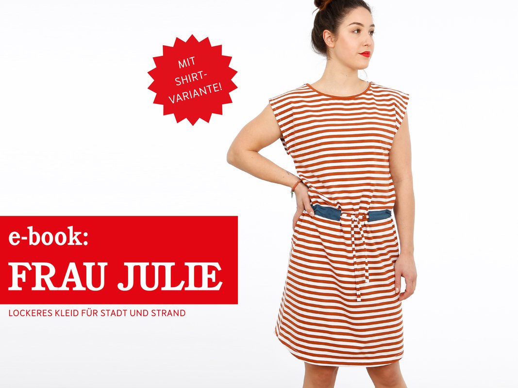 Lerne FRAU JULIE kennen und lieben - dann ist dieses Kleid nicht mehr aus Deiner Sommergarderobe wegzudenken! Strand, Stadtbummel oder Party - FRAU JULIE macht immer eine gute Figur. Luftig durch das leicht geschoppte Oberteil und den weiten Armausschnitt, gut sitzend durch den vorne offenen Tunnelzug, schwungvoll durch den leicht abgerundeten Saumabschluss!