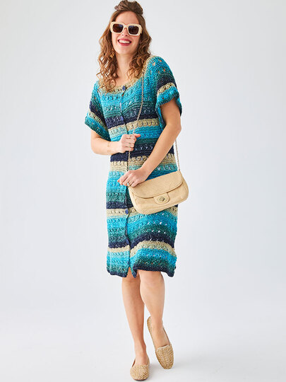 Eine Jacke, die vielseitig getragen werden kann. Sie ist aus der edlen Woolly Hugs SKY gehäkelt und diese ist aus 100% Baumwolle. Diese Jacken kann mal in der kalten Jahreszeit drüber ziehen und als Jacke tragen, aber auch im Sommer als Kleidchen.