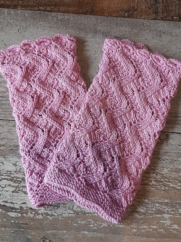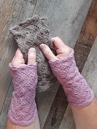 Diese Stulpen/Pulswärmer haben keinen Daumenkeil, sondern werden einfach über die Hand gezogen.