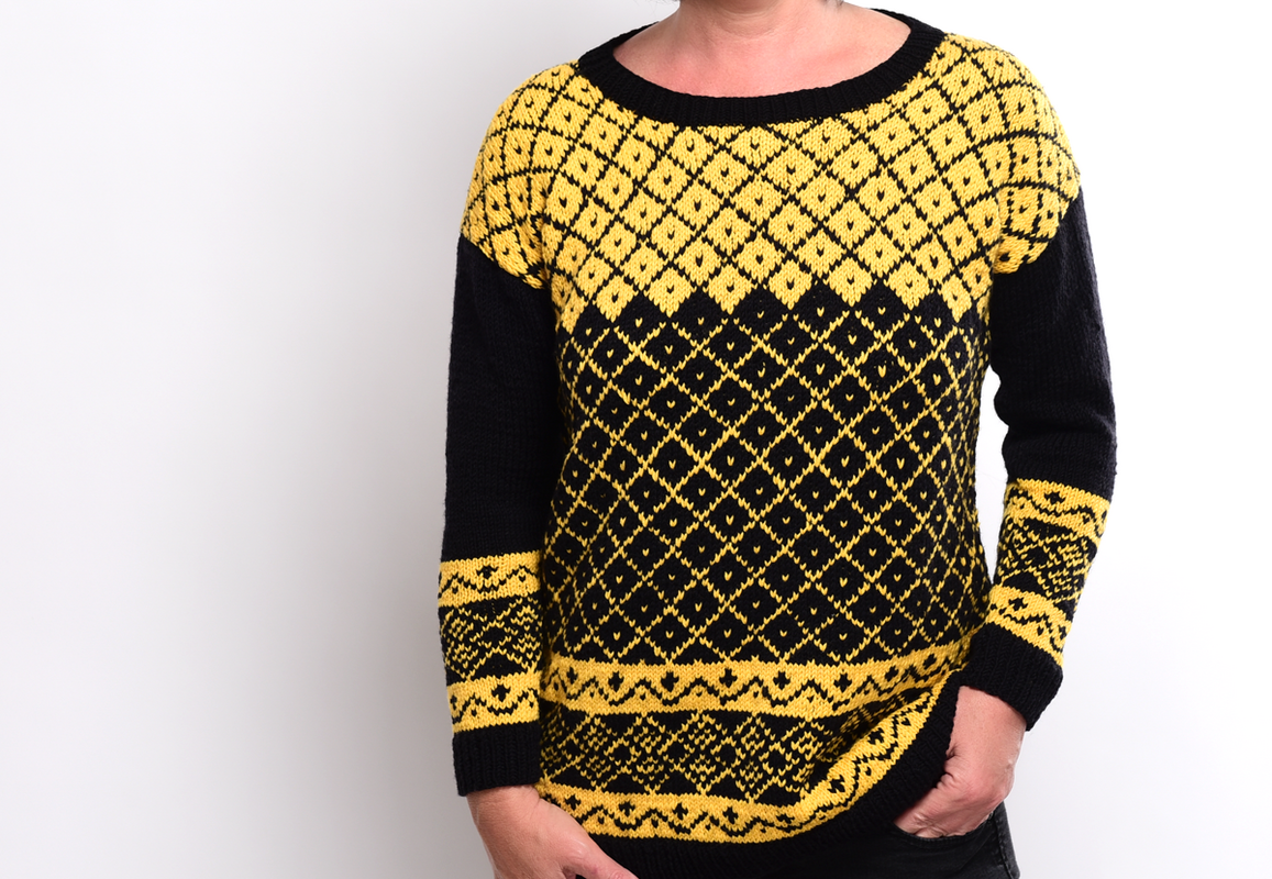 Dieser Pullover ist genau das Richtige für alle Fans von Fair-Isle-Mustern! Ein wenig Übung im mehrfarbigen Stricken ist allerdings nötig, denn dieser Pullover wird in Einzelteilen gestrickt und anschließend zusammengenäht. Was bedeutet, dass das Muster auch in den Rückreihen gestrickt wird.