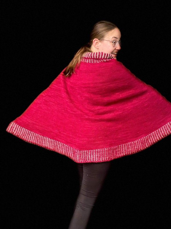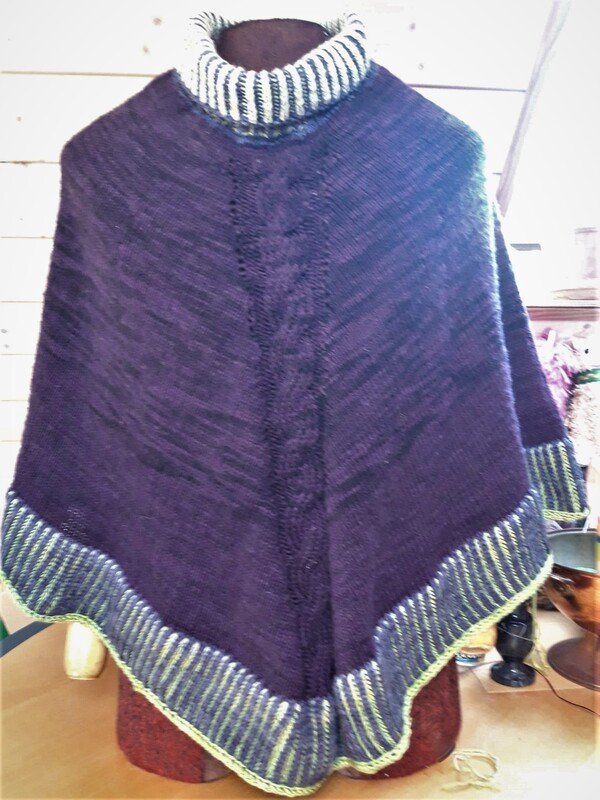 Der fertige Poncho hat eine Höhe von 85cm und eine Breite von ca.128cm