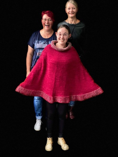 Die Wolle hat eine LL von 200m auf 100g, es kann natürlich mit jeder anderen entsprechenden Wolle gestrickt werden, durch die Dicke der Wolle ist der Poncho relativ zügig gestrickt.