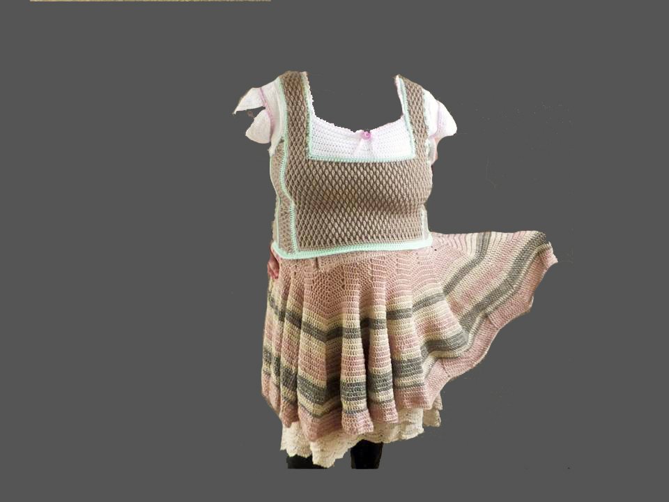 Kann beliebig groß oder klein gehäkelt werden, Fotos zeigen ein Kleid in Größe 44/46 Figur “Apfel”
