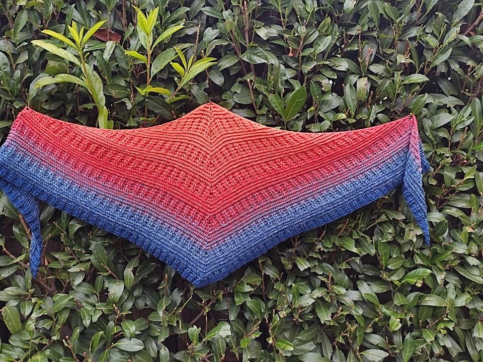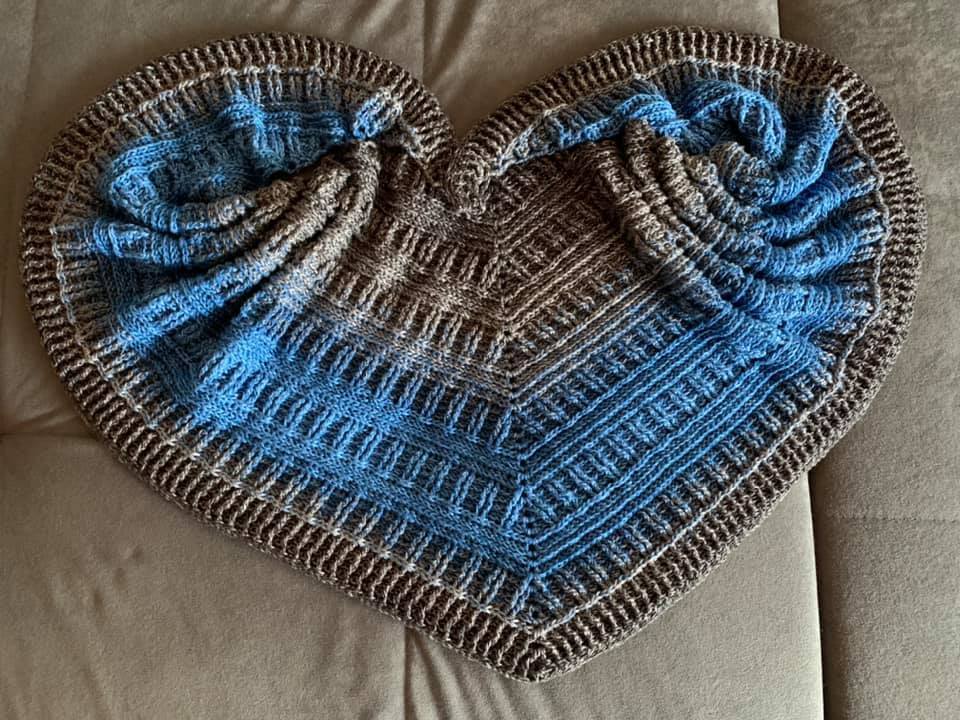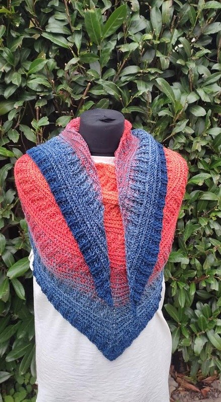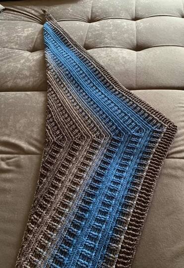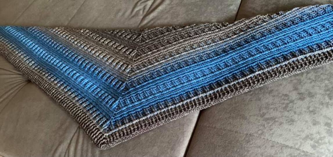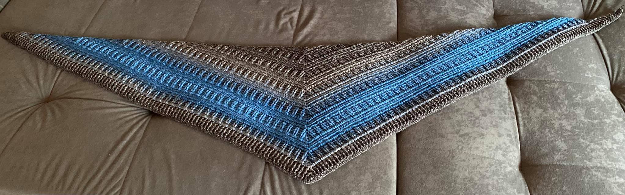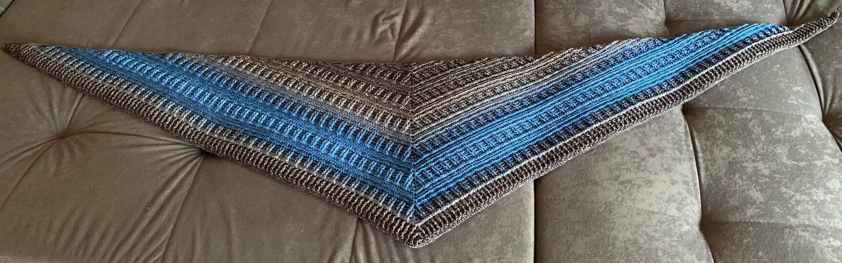 Mein Tuch ist bei einem Verbrauch von 1000m 4-fädigen Modals ca 234x40cm groß geworden.