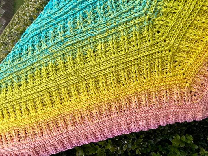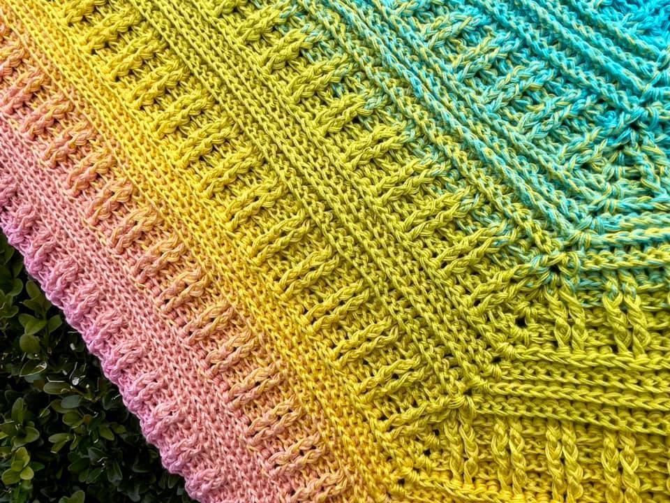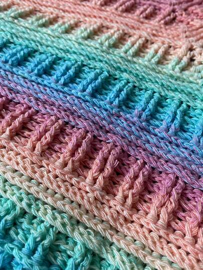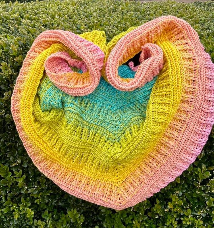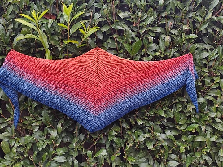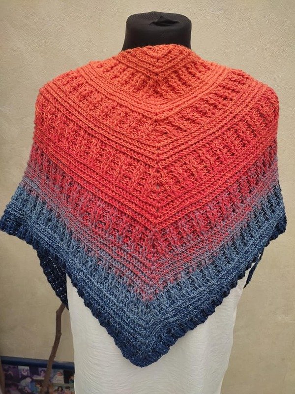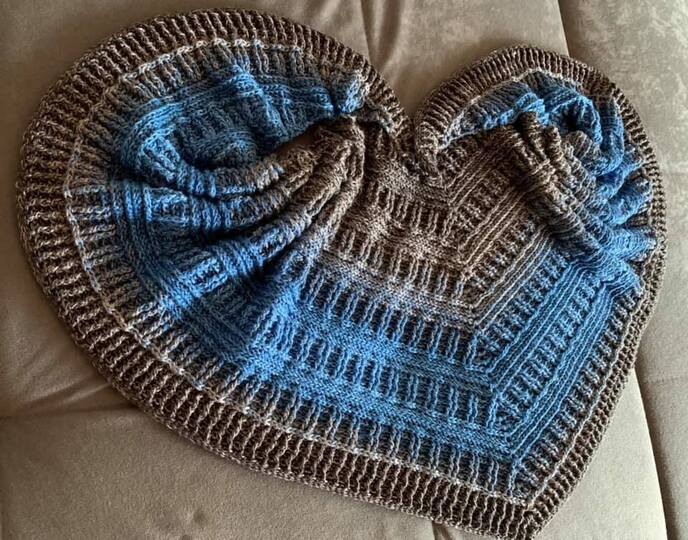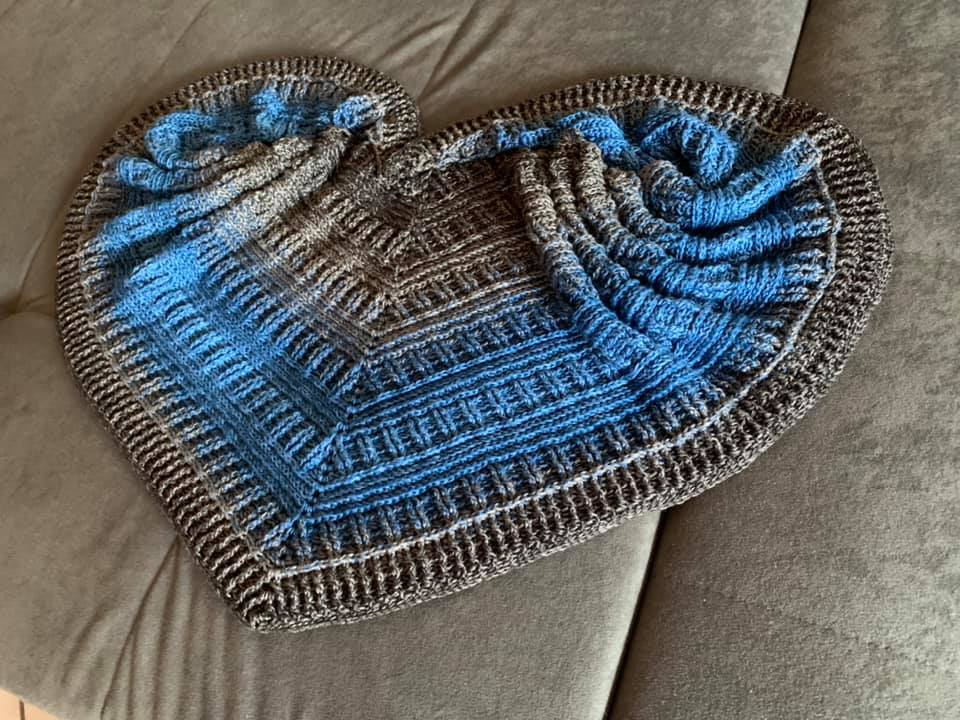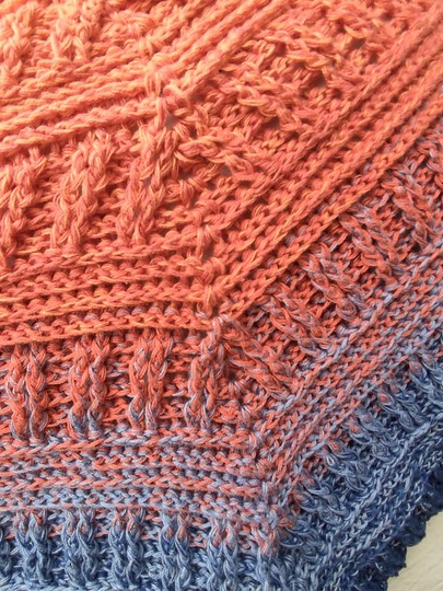 Mein Tuch ist bei einem Verbrauch von 1000m 4-fädigen Modals ca 234x40cm groß geworden.