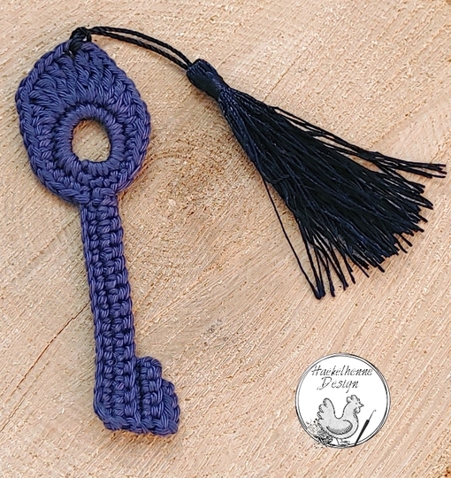 Der Schlüssel wird mit einer NS von 2,5 mm ca. 12 cm lang. Dies variiert allerdings durch den jeweiligen Häkelstil, die NS und das verwendete Garn.