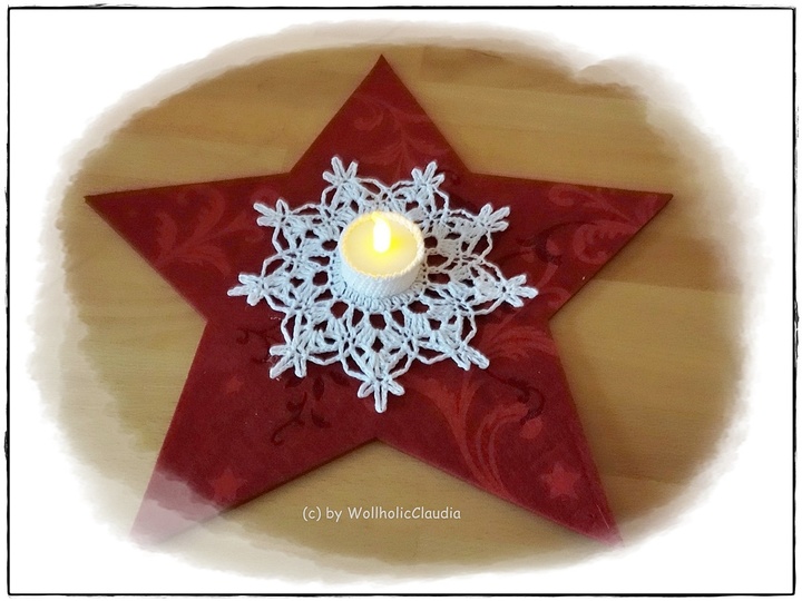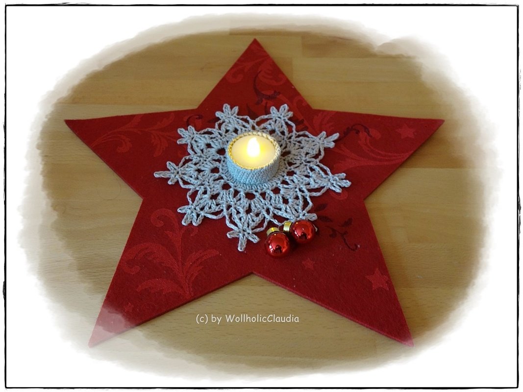 Ein Teelichthalter für eine wunderschöne Tischdekoration oder ein toller Stern für ans Fenster, den Weihnachtsbaum oder einfach zum Verschenken. Ein paar Wollreste genügen und schon kanns losgehen.