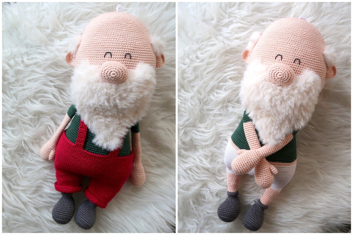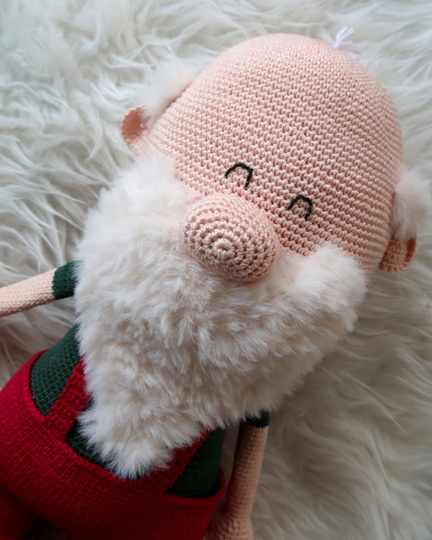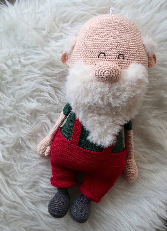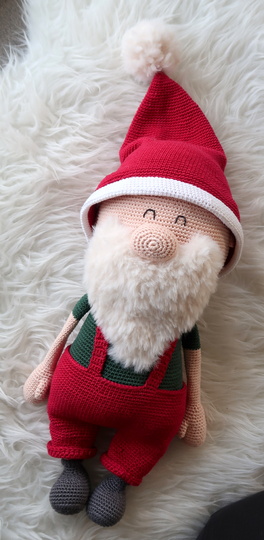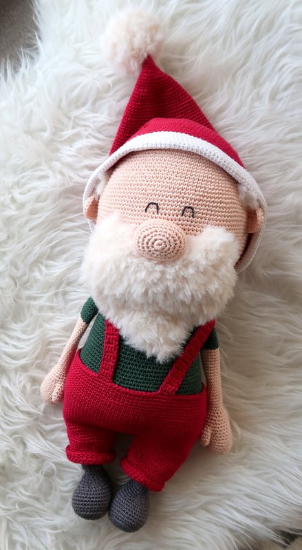 Wenn du mit Baumwolle (125m LL auf 50g) häkelst, wird dein großer Weihnachtsmann ca. 45cm hoch (ohne Mütze).