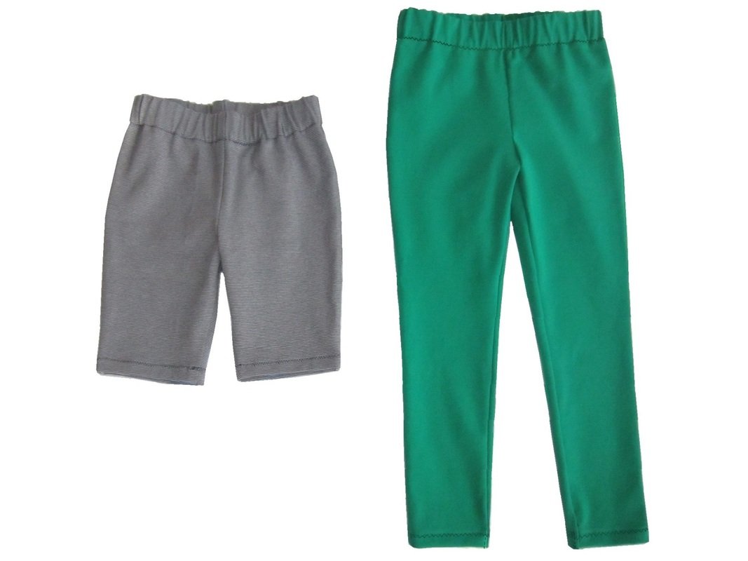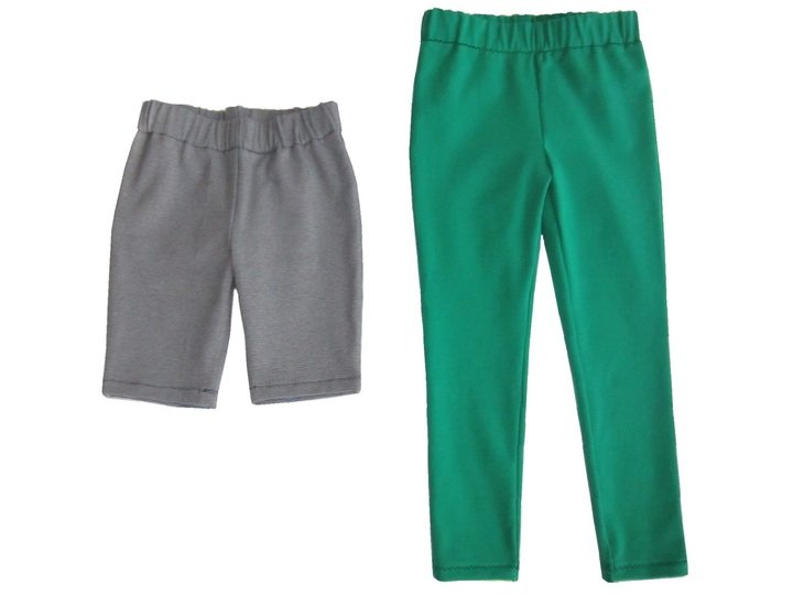 Schnittmuster für ein Mädchenhose in 2 Längen: Kurze Radlerhose oder sportliche Leggings. Das Modell hat Seitennähte, die Hüfte ist leicht ausgearbeitet und hat eine gute Passform für Mädchen. Das Modell ist geeignet für Jersey mit Elastan, für leichten Stoff, aber gerne auch etwas schwerere Jerseyqualtitäten, die angezogener aussehen wie etwa Sportleggings. Im Schnitt sind für jede Größe 2 Längen (Leggings knöchellang und Radhose eine Hand breit über dem Knie) eingezeichnet, aber Sie können die Länge selbst variieren und den Schnitt auf Ihr Wunschmaß kürzen.