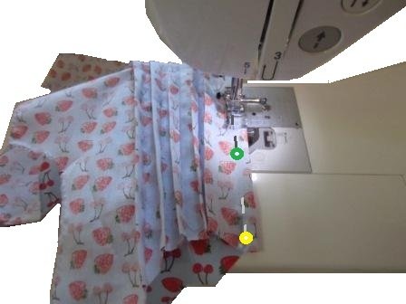 Sie benötigen eine Haushaltsnähmschine, schönen Baumwollstoff, 4 Druckknöpfe, und wenn Sie wollen, Dekobänder