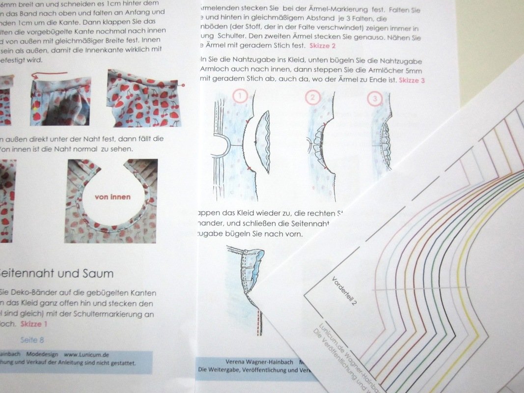 Der Schnitt umfasst 13 Seiten, die Nähanleitung, die nicht unbedingt ausgedruckt werden muss, hat 11 Seiten.